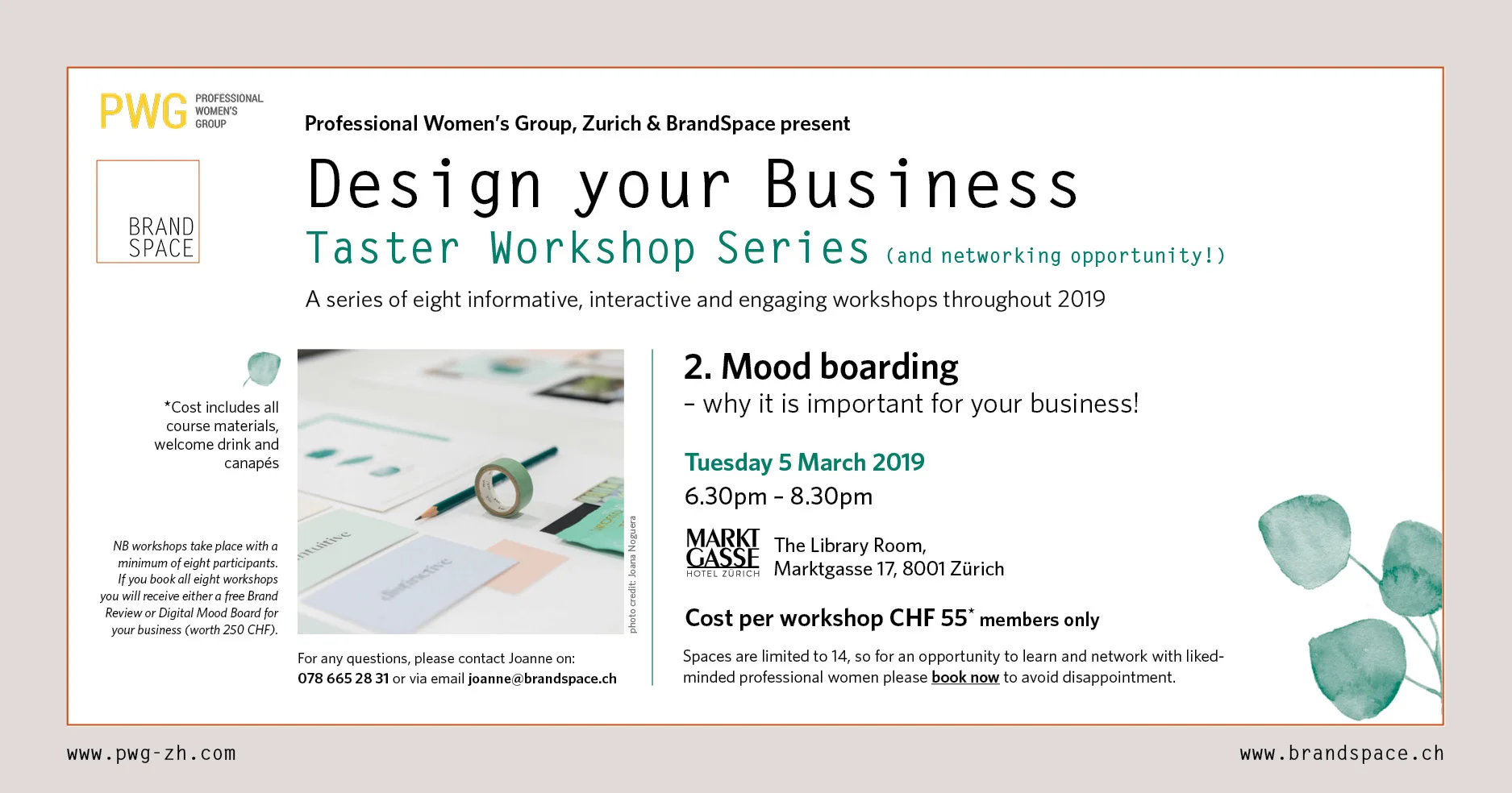 BrandSpace, in partnership with Professional Women’s Group, Zurich will present Mood boarding Taster Workshop.